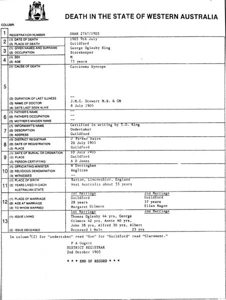 George King 3090 Death Cert (Image: Jo-anne Lowick)
