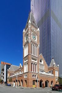 The Perth Town Hall, situated on the corner of Hay and Barrack streets in Perth, Western Australia, is the only town hall built by convicts in Australia. Upon completion it was the tallest structure in Perth.